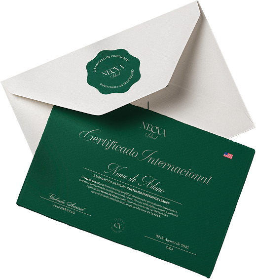 Na formação, você vai dominar CX, CS, tecnologia, imagem, posicionamento e comunicação estratégica, com acesso a 100% dos cursos e à comunidade NECXA por 12 meses.