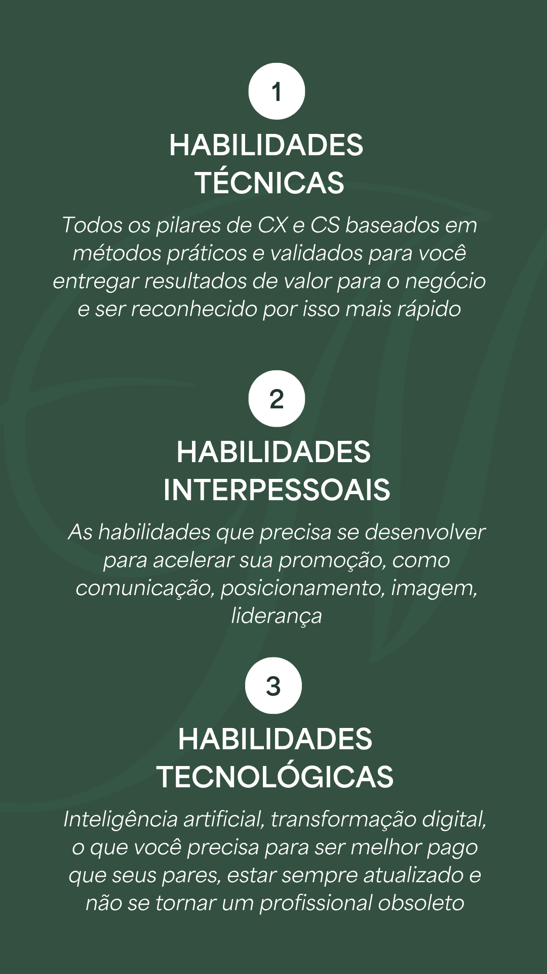 Uma formação multidimensional para quem quer dominar CX, CS, tecnologia e posicionamento estratégico.